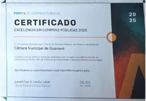 Início Câmara de Guamaré conquista Certificado de Excelência em Compras Públicas e reforça compromisso com transparência em 2025